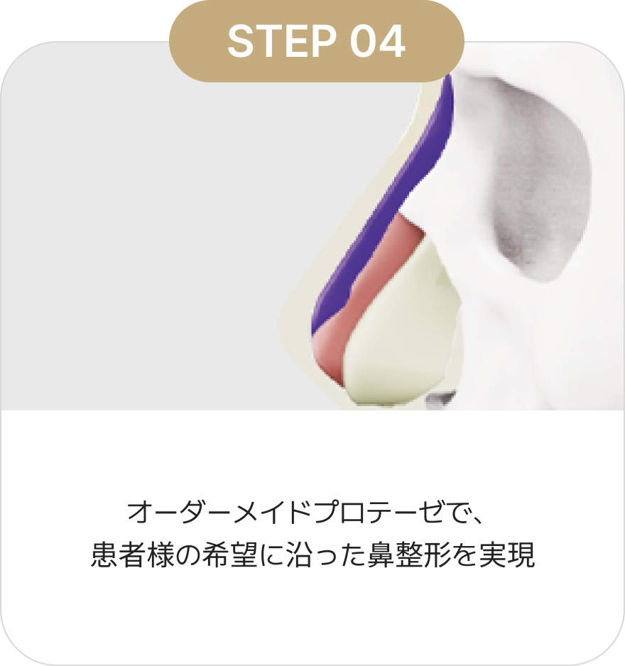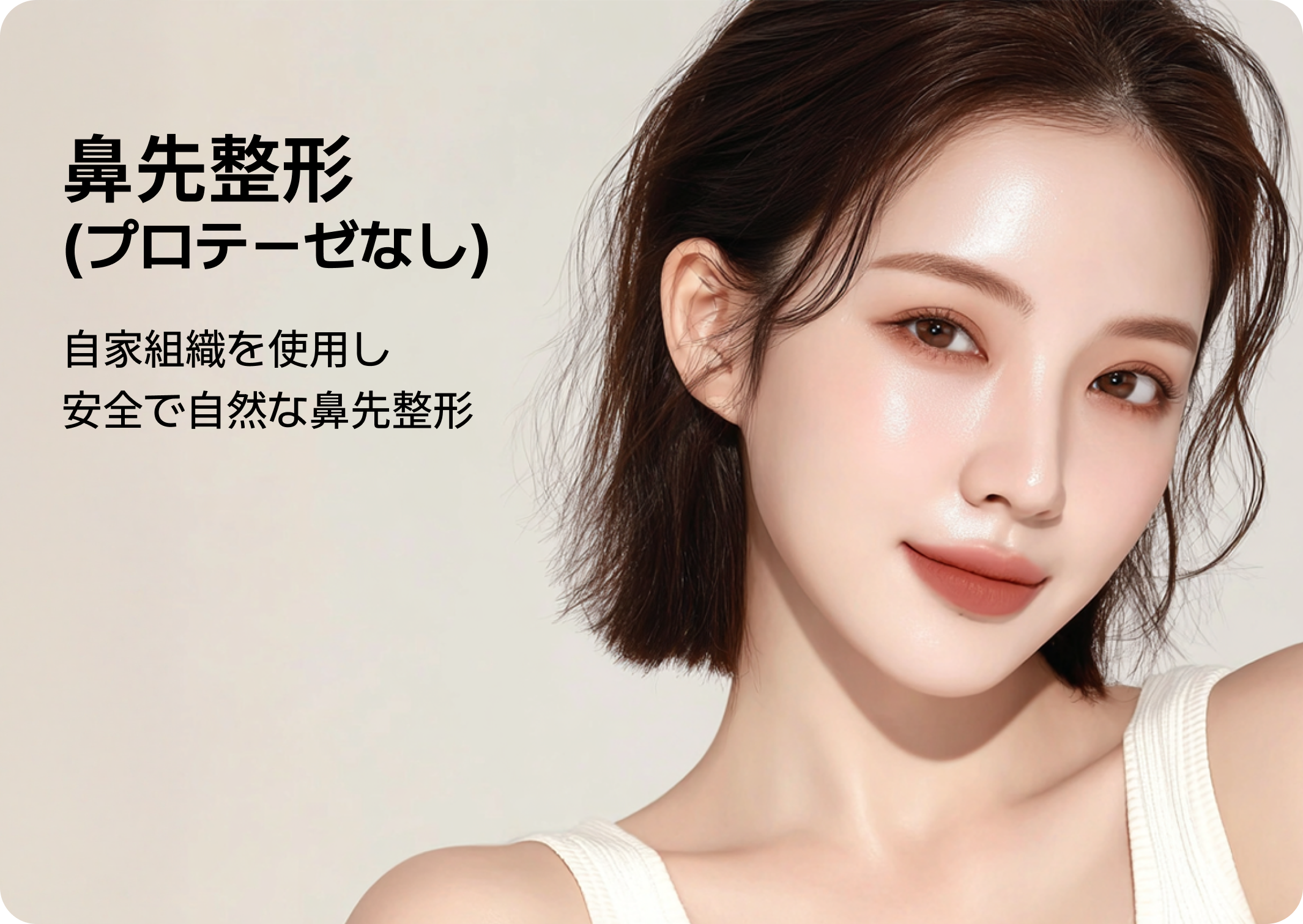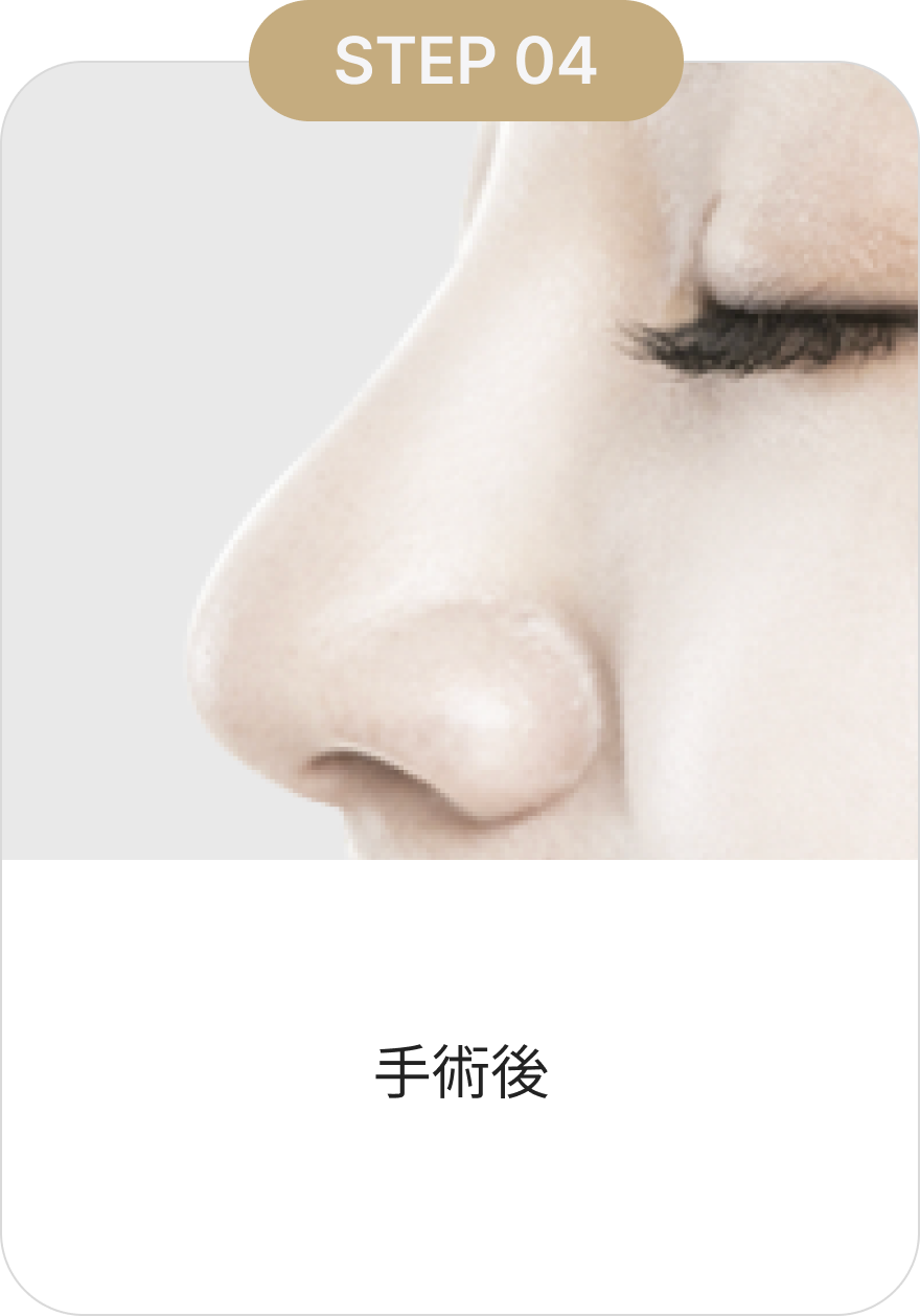 耳介軟骨と鼻中隔軟骨の長所を活かした手術で、鼻中隔延長術により鼻先をしっかりと高くし、