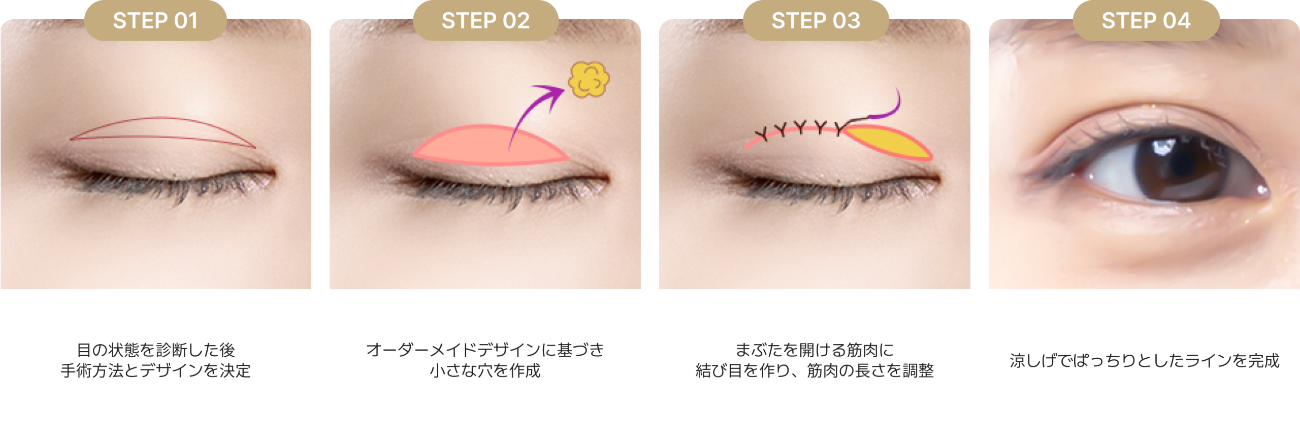 この眼輪筋を傷つけずに切開式目元矯正を行うことが重要であり、