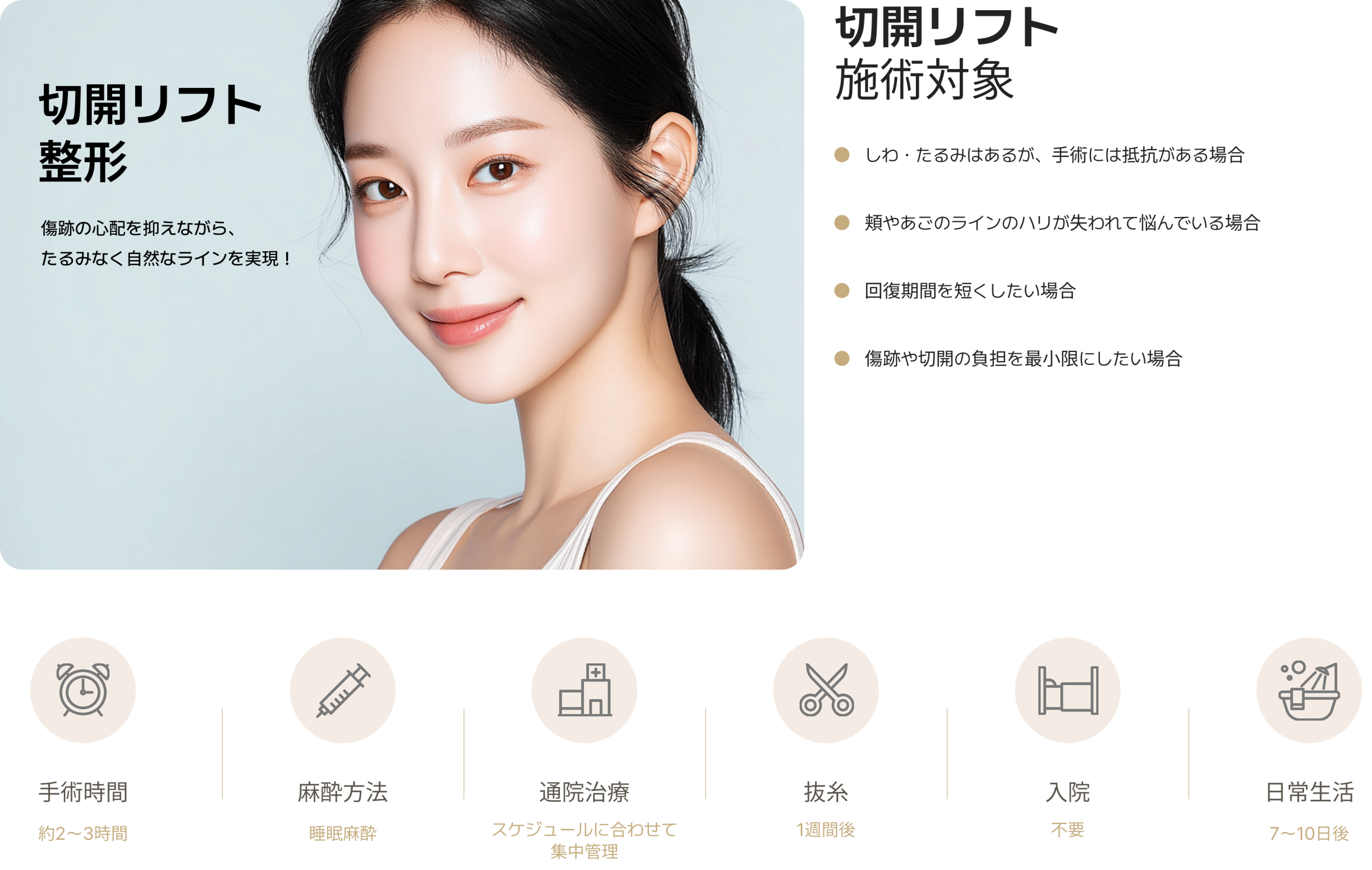 患者様それぞれのあごの構造、皮膚の特性、筋肉のたるみ状態を専門的に分析し、最適な手術方法をご提案します。