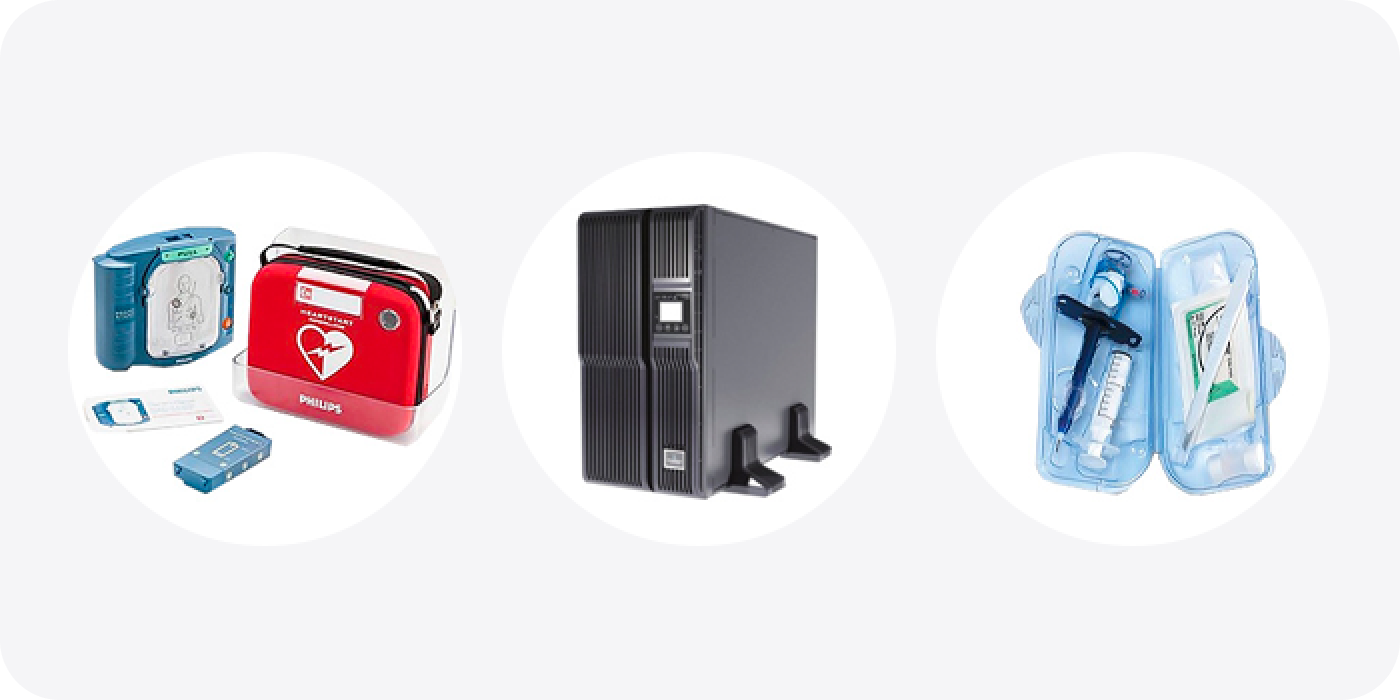 心臓除細動器や救急救助キットも常備しているため安心です。
